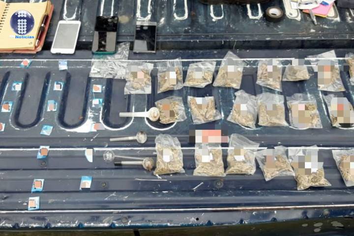 NOTICIAS 01/11/2021Durante labores operativas, SSP detiene a cuatro en posesión 59 envoltorios con drogas Derivado de las labores operativas para la disuasión del delito, los elementos de la Secretaría de Seguridad Pública (SSP) detuvieron a dos personas del sexo femenino y dos más del sexo masculino en posesión de varios envoltorios que contenían hierba verde y seca, al parecer marihuana, así como una sustancia granulosa con las características de la metanfetamina; hecho registrado en este municipio.