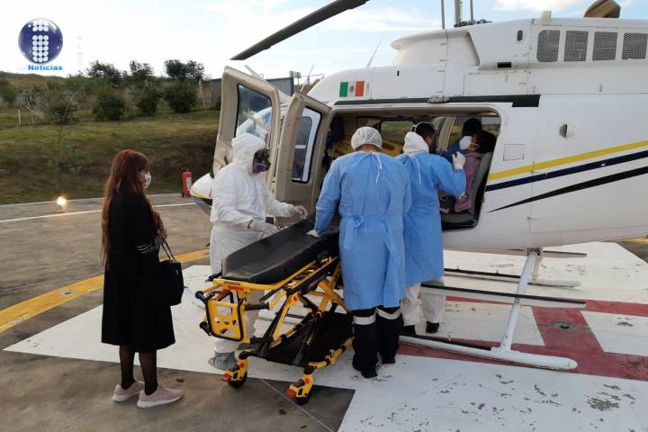 NOTICIAS 16/10/2021SSP, SSM y Servicios Aéreos realizan traslado aéreo de una paciente con covid-19Labores coordinadas entre los elementos de la Secretaría de Seguridad Pública (SSP), de la Secretaría de Salud y el personal de Servicios Aéreomedicos de Urgencias del estado, coadyuvaron para facilitar el traslado de una paciente con covid-19 a un hospital.
