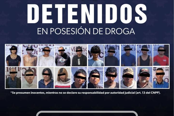 NOTICIAS 19/02/2026SSP detiene a 20 personas con dosis de droga en la última semanaComo resultado de los operativos reforzados en Michoacán, la SecretarÃa de Seguridad Pública (SSP) detuvo a 20 personas en posesión de droga durante la última semana. Las capturas se realizaron en acciones estratégicas desplegadas en cinco municipios del estado.