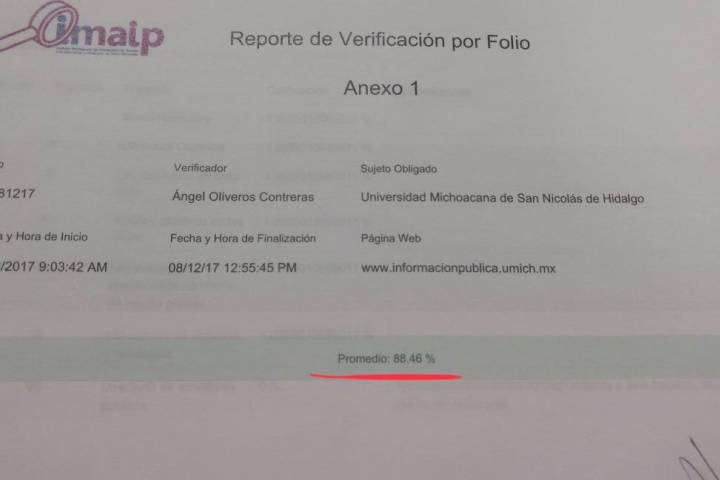 NOTICIAS 08/12/2017Evalúa IMAIP transparencia en UMSNH con un 88.46 por cientoEl Instituto Michoacano de Transparencia, Acceso a la Información y Protección de Datos Personales (IMAIP) evaluó con un 88.46 por ciento en trabajo de la Universidad Michoacana de San Nicolás de Hidalgo en materia de transparencia, luego de comprobarse que como sujeto obligado la Institución nicolaita dispone, para consulta de la sociedad, de información suficiente sobre el destino de los recursos públicos que se le canalizan.