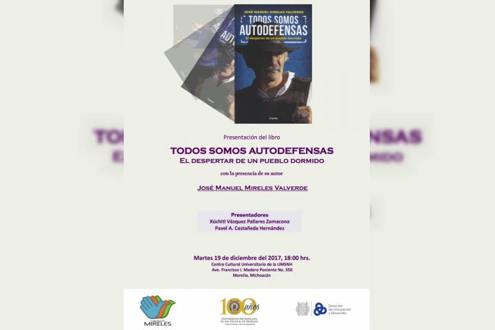 NOTICIAS 14/12/2017Presentarán libro "Todos somos autodefensas" en la Casa de HidalgoLa Universidad Michoacana de San Nicolás de Hidalgo, a través de la Dirección de Vinculación y Desarrollo y la Fundación Mireles, invita a la comunidad nicolaita y público en general a la presentación del Libro "Todos somos autodefensas, El despertar de un pueblo dormido", a cargo de su autor, el líder social José Manuel Mireles Valderde.