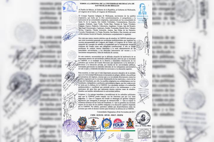 NOTICIAS 28/11/2017Manifiesto "Todos a la defensa de la Universidad Michoacana de San Nicolás de Hidalgo"TODOS A LA DEFENSA DE LA UNIVERSIDAD MICHOACANA DE SAN NICOLÁS DE HIDALGO