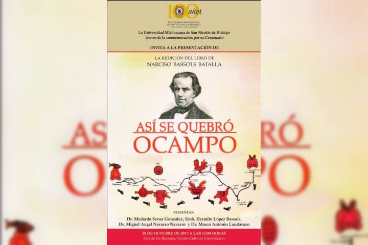 Como parte de las actividades por la conmemoración de su Centenario, la Universidad Michoacana de San Nicolás de Hidalgo invita a la comunidad universitaria y público interesado, a la presentación del libro "Así se quebró Ocampo", que se llevará a cabo esta semana en el Centro Cultural Universitario nicolaita.