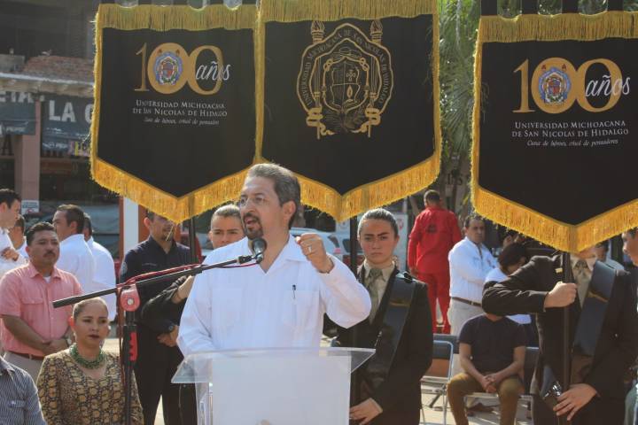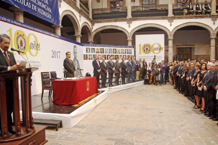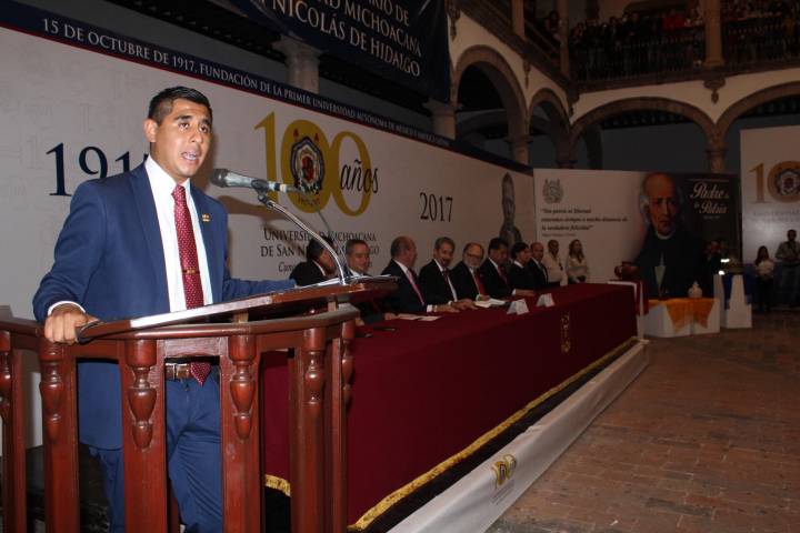 La Universidad Michoacana de San Nicolás de Hidalgo es símbolo de identidad y referente de la historia del país, elemento clave del presente para el desarrollo de la vocación humanista y solidaria, afirmó el secretario de Gobierno, Adrián López Solís, durante la Sesión Solemne del Honorable Consejo Universitario dedicada a la conmemoración del Centenario de la Institución.