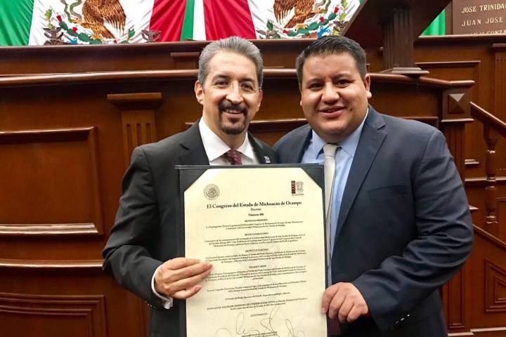 En el marco de su visita a Apatzingán donde el Ayuntamiento reconoció la trayectoria de la Máxima Casa de Estud... Ver más...