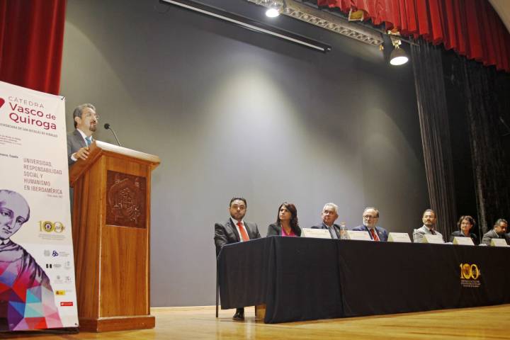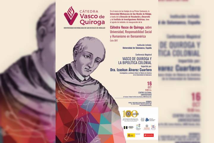 En el marco de los festejos de su primer Centenario, la Universidad Michoacana de San Nicolás de Hidalgo a través de la Dirección de Vinculación y Desarrollo y del Instituto de Investigaciones Históricas invita a la inauguración de la Cátedra Vasco de Quiroga sobre "Universidad, Responsabilidad Social y Humanismo en Iberoamérica".