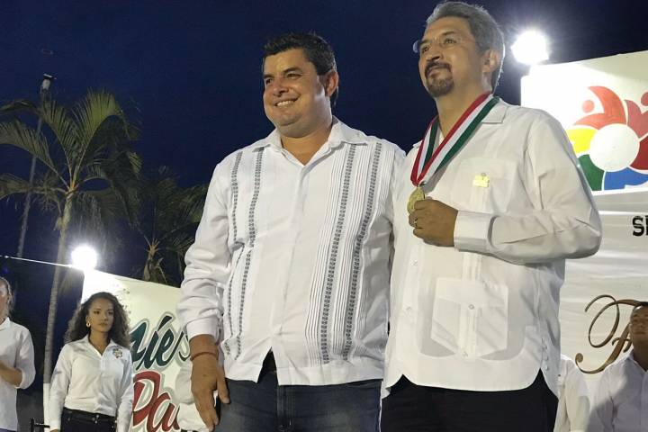 Al ser condecorado por el Ayuntamiento de Múgica con la Presea "Francisco J. Múgica", el rector... Ver más...