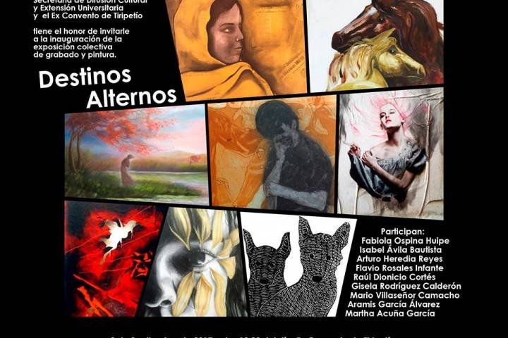 NOTICIAS 31/08/2017Jóvenes michoacanos preparan muestra artística en Ex Convento de TiripetíoLa Universidad Michoacana de San Nicolás de Hidalgo, a través de la Secretaría de Difusión Cultural y Extensión Universitaria y el Ex Convento de Tiripetío, invita a la comunidad nicolaita y público en general a la inauguración de la exposición colectiva de grabado y pintura "Destinos Alternos".