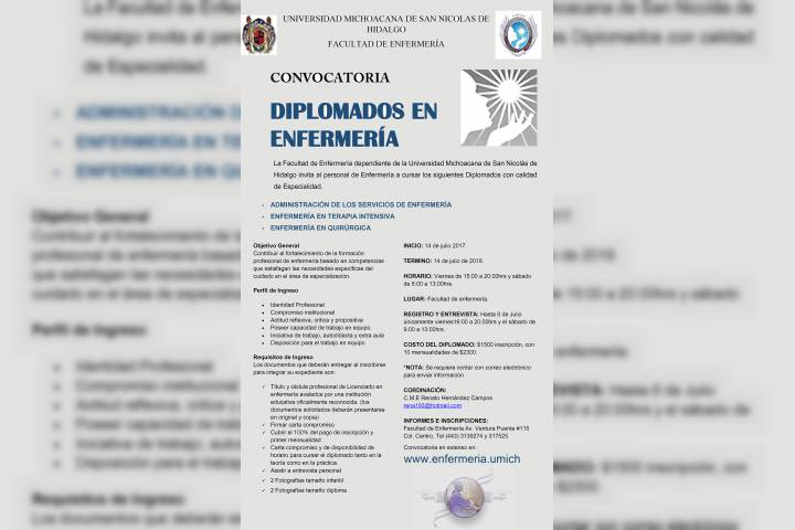 NOTICIAS 31/07/2017Últimos espacios para Diplomados en la Facultad de OdontologíaLa Facultad de Odontología de la Universidad Michoacana de San Nicolás de Hidalgo informa a la comunidad interesada que continúa abierto el periodo de registro para sus próximos diplomados a iniciar durante el mes de septiembre y que tienen como propósito mantener actualizados a sus egresados, además de ofrecer otra alternativa para obtener el título de licenciatura.