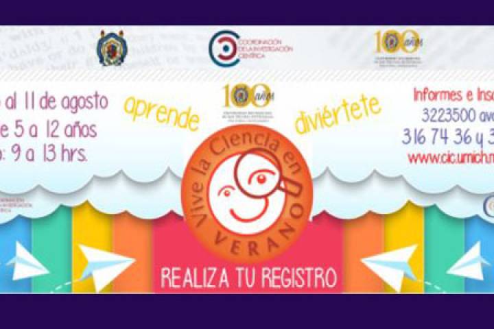 NOTICIAS 01/08/2017Aún hay lugares para inscribirse al curso "Vive la Ciencia este Verano"Como cada año, la Coordinación de la Investigación Científica de la Universidad Michoacana de San Nicolás de Hidalgo, a través de la Casita de la Ciencia, ofrece el curso "Vive la ciencia en verano", taller de la ciencia en el que se trabaja con niños y niñas de manera lúdica y estimulante.