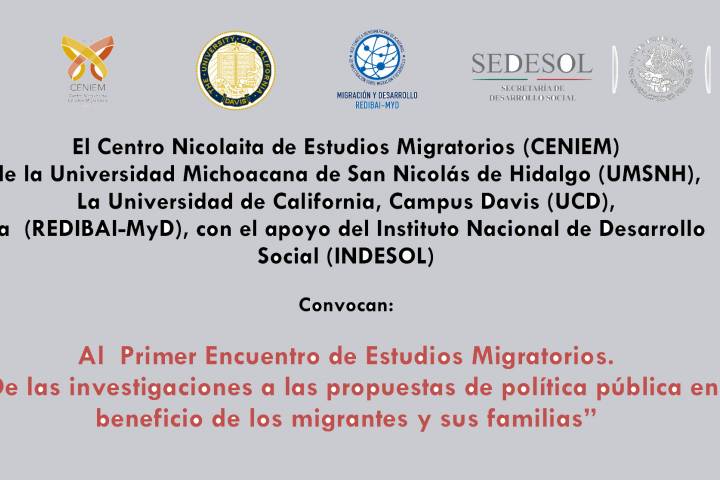 Con el propósito de estrechar vínculos entre académicos, organizaciones de migrantes, asociaciones civiles e instancias gubernamentales, para conjuntar el conocimiento arrojado por diferentes investigaciones en torno a este fenómeno poblacional, la Universidad Michoacana de San Nicolás de Hidalgo, a través del Centro Nicolaita de Estudios Migratorios (CENIEM), invita al Primer Encuentro de Estudios Migratorios.