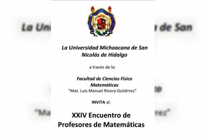 En la búsqueda de contribuir al mejoramiento de la enseñanza y el aprendizaje de las matemáticas en el nivel medio superior y superior, la Universidad Michoacana de San Nicolás de Hidalgo, a través de la Facultad de Ciencias Físico Matemáticas "Mat. Luis Manuel Rivera Gutiérrez", invita al XXIV Encuentro de Profesores de Matemáticas.