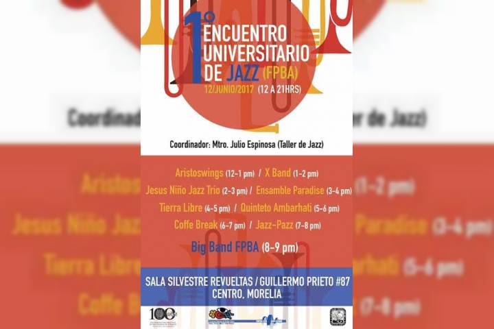 NOTICIAS 10/06/2017Este lunes, el 1er Encuentro Universitario de Jazz en UMSNHLa Facultad Popular de Bellas Artes de la Universidad Michoacana de San Nicolás de Hidalgo invita al público en general al 1er Encuentro Universitario de Jazz, que albergará en su sede del Centro Histórico, a partir del mediodÃa del lunes 11 de junio.