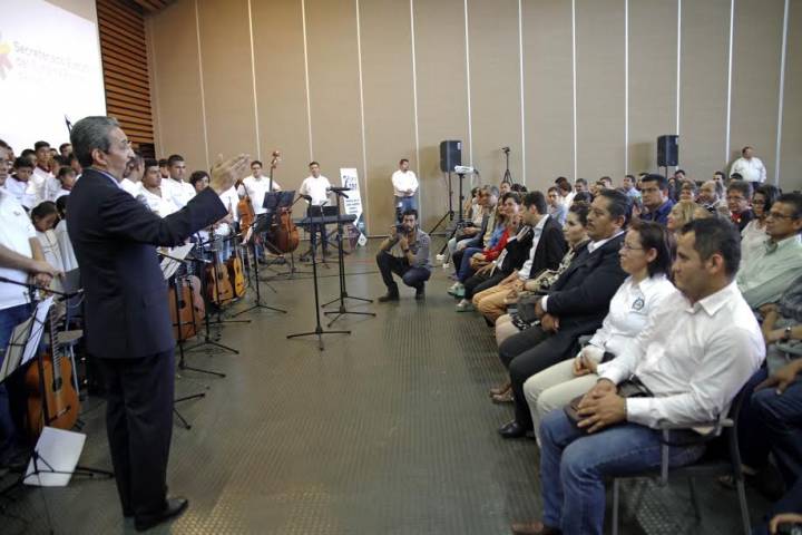 NOTICIAS 30/05/2017Cierra el 2do Foro de Responsabilidad Social UniversitariaComo parte del acto de clausura del 2do Foro Internacional de Responsabilidad Social Universitaria con sede en la Casa de Hidalgo, se presentó Coro Monumental y Orquesta Juvenil de Guitarras Cantando por la Paz.