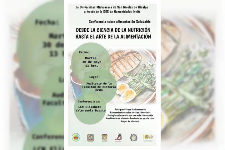 Dado que contar con una alimentación sana favorece al mantenimiento de una buena salud, nos ayuda a sentirnos bien y tener un cuerpo fuerte y saludable, la Universidad Michoacana de San Nicolás de Hidalgo, a través de la DES de Humanidades invita a la comunidad universitaria a la conferencia sobre alimentación saludable titulada "Desde la ciencia de la nutrición hasta el arte de la alimentación".