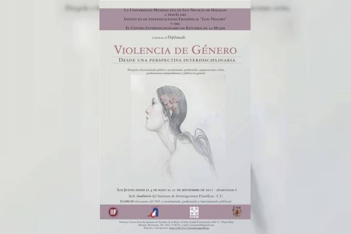 NOTICIAS 02/05/2017Violencia de Género, tema de próximo Diplomado en la UMSNHCon un tema muy presente en nuestra sociedad a lo largo de la historia, que ha tomado relevancia en los últimos años, la Universidad Michoacana de San Nicolás de Hidalgo a través del Instituto de Investigaciones Filosóficas y del Centro Interdisciplinario de Estudios de la Mujer, invita a su próximo Diplomado Internacional titulado "Violencia de Género", desde una perspectiva interdisciplinaria.