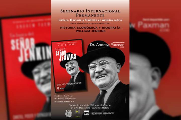 NOTICIAS 05/04/2017Andrew Paxman dictará conferencia en la Casa de Hidalgo A través del Instituto de Investigaciones Históricas y la Facultad de Historia, la Universidad Michoacana de San Nicolás de Hidalgo invita a la comunidad nicolaita y público en general a la conferencia que dictará el historiador Andrew Paxman durante la cual presentará su libro "En busca del señor Jenkins".