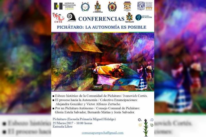La Universidad Michoacana de San Nicolás de Hidalgo, a través del Centro Nicolaita de Estudios de los Pueblos Originarios, el Instituto de Investigaciones Históricas, la Facultad de Historia y la Facultad de Psicología, convoca al público en general a la mesa de diálogo titulada: Pichátaro: la Autonomía es Posible.