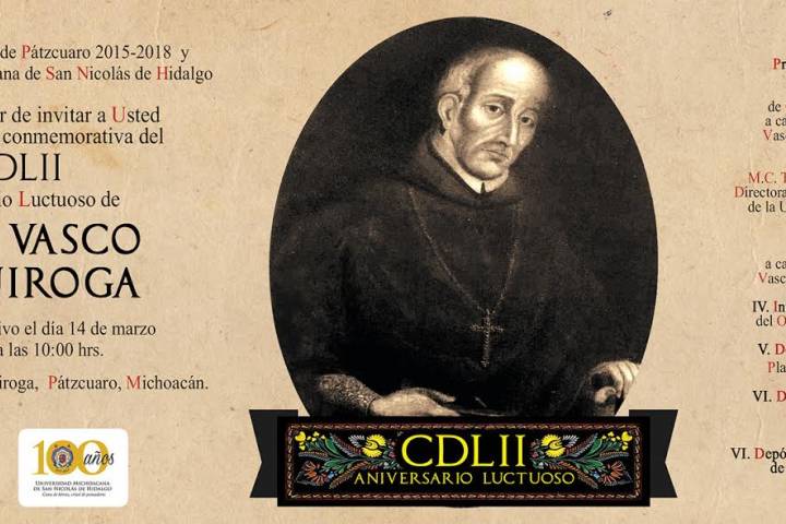 La Universidad Michoacana de San Nicolás de Hidalgo se une a la ceremonia conmemorativa del CDLII Aniversario Luctuoso de Don Vasco de Quiroga, fundador del Colegio de San Nicolás, que año con año realiza el Ayuntamiento de Pátzcuaro.