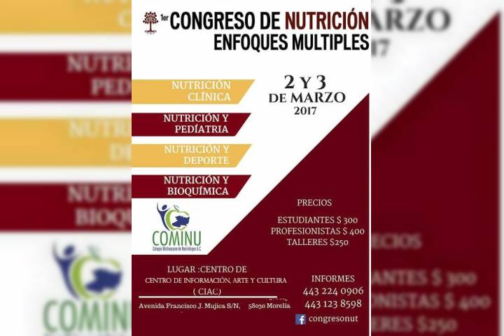 NOTICIAS 28/02/20171er Congreso de Nutrición Enfoques Múltiples, esta semana en UMSNHCon la presencia de reconocidos ponentes especialistas en el área, la Facultad de Ciencias Médicas y Biológicas "Dr. Ignacio Chávez" de la Universidad Michoacana de San Nicolás de Hidalgo, a través de la Licenciatura en Nutrición, invita a la comunidad del área de la salud, a participar en el 1er Congreso de Nutrición Enfoques Múltiples.