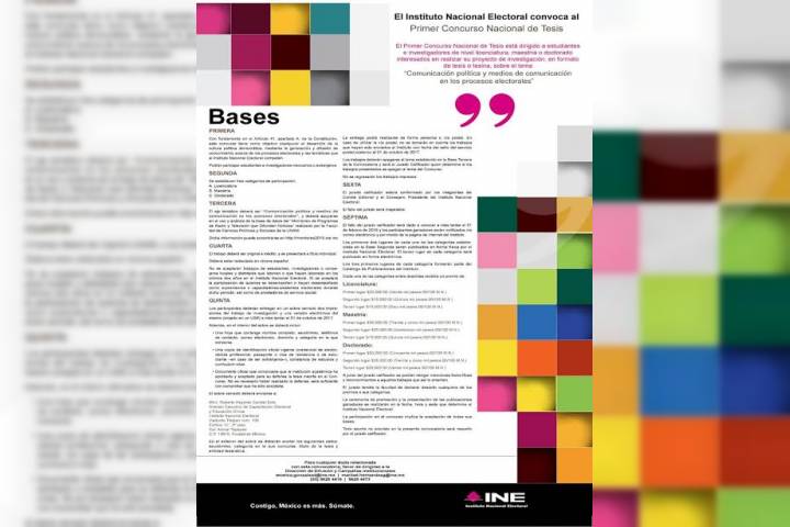 NOTICIAS 13/02/2017INE convoca a Concurso Nacional de Tesis sobre medios de comunicación en procesos electoralesPara contribuir al desarrollo de la cultura política democrática, mediante la generación y difusión de conocimiento sobre los procesos electorales y temáticas en torno al Instituto Nacional Electoral, la Universidad Michoacana de San Nicolás de Hidalgo, a través del Departamento de Vinculación y Desarrollo, invita a la comunidad universitaria, a participar en la convocatoria del Primer Concurso Nacional de Tesis publicada por el Instituto... Ver más...