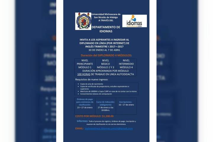 NOTICIAS 20/01/2017Cursos de Inglés en línea, anuncia el Departamento de Idiomas de la UMSNH