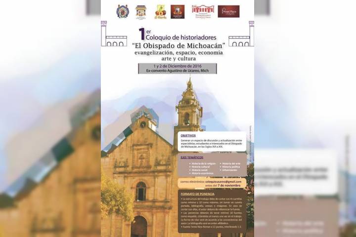 Con el propósito de generar un espacio de discusión y actualización entre especialistas, estudiantes e interesados en el acontecer del Obispado de Michoacán durante los siglos XVI al XIX, la Facultad de Historia de la Universidad Michoacana de San Nicolás de Hidalgo (UMSNH), invita a la comunidad universitaria nicolaita a participar en el Primer Coloquio de Historiadores "El Obispado de Michoacán" Evangelización, Espacio, Economía, Arte... Ver más...