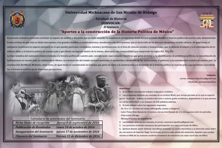 NOTICIAS 04/11/2016Seminario sobre la Historia Política de nuestro país en la UMSNH