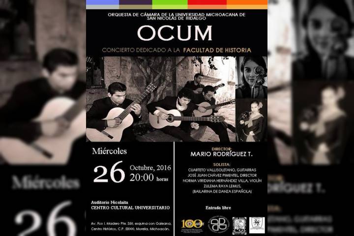 La Orquesta de Cámara de la Universidad Michoacana de San Nicolás de Hidalgo (OCUM), continua brindando a la sociedad michoacana lo mejor de la música clásica y contemporánea a través de su temporada de conciertos semanales, con motivo de los festejos del Centenario de la Casa de Estudios.