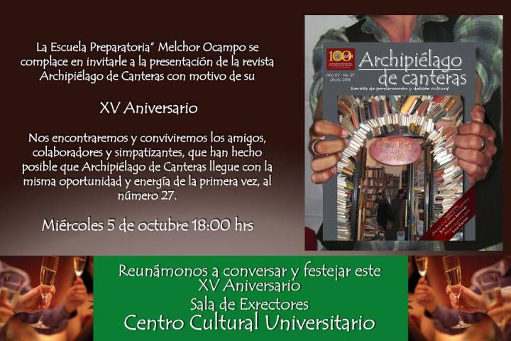 Como una publicación de pensamiento y debate cultural, este mes la Revista Archipiélago de Canteras, editada por la Universidad Michoacana de San Nicolás de Hidalgo (UMSNH), llega a su XV Aniversario, generando información de interés general en diversas áreas del conocimiento.