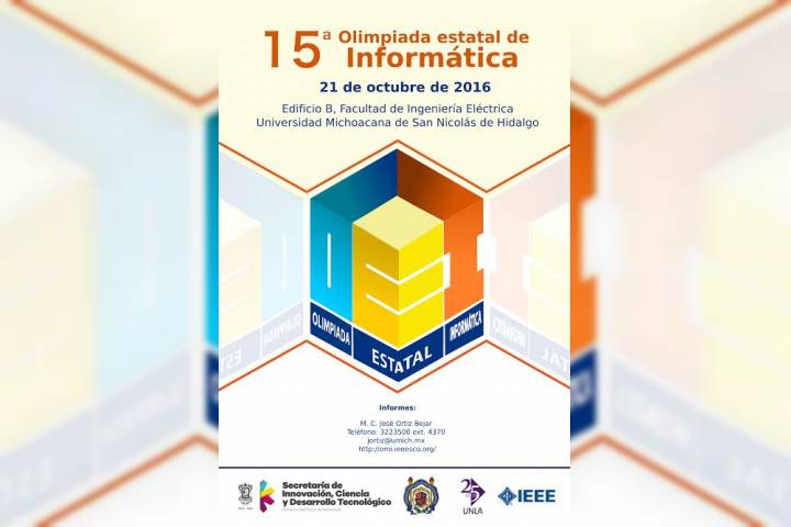 El Comité Michoacano de Informática, a través de la Facultad de Ingeniería Eléctrica de la?Universidad Michoacana de San Nicolás de Hidalgo, convoca a la 15° Olimpiada Estatal de Informática, para conformar la delegación que representará al Estado en la Olimpiada Nacional Mexicana de Informática a celebrarse en mayo del 2017, en la ciudad de Querétaro.