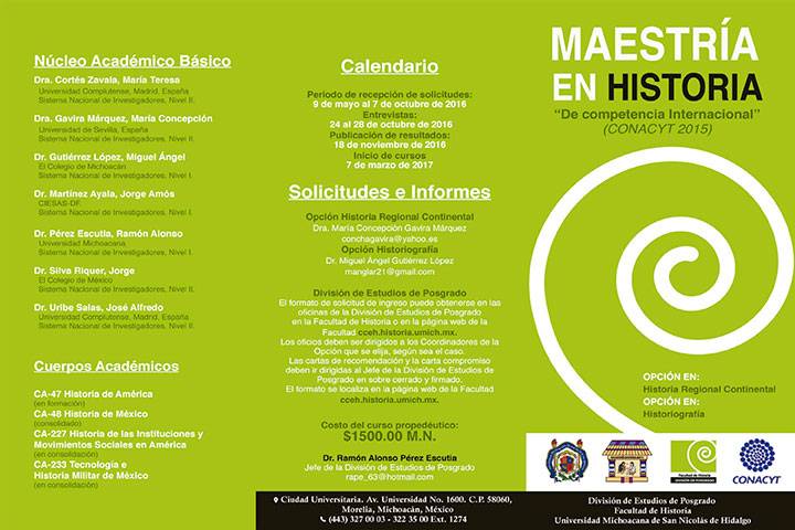 NOTICIAS 08/08/2016Maestría en Historia, opción de posgrado para egresados nicolaitas