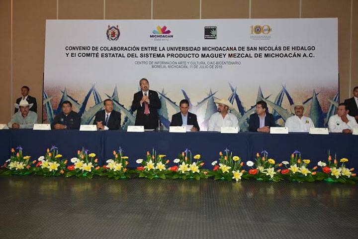 NOTICIAS 11/07/2016Firma UM convenio de colaboración con el Comité Estatal del Sistema Producto Maguey MezcalLa firma con la Universidad Michoacana del convenio de acompañamiento para garantizar la certificación del mezcal michoacano, da la certeza y confianza de que esta bebida tendrá la calidad que se requiere para su comercialización a nivel mundial, destacó el gobernador del Estado, Silvano Aureoles Conejo, durante la ceremonia en la que se signó el Convenio de Colaboración entre la Casa de Hidalgo y el Comité Estatal del Sistema Producto Ma... Ver más...