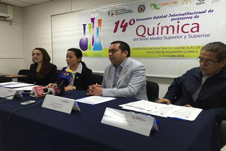 Con el apoyo de la Secretaría de Innovación, Ciencia y Desarrollo Tecnológico, la Universidad Michoacana de San Nicolás de Hidalgo coordinará el 14° Encuentro Estatal Interinstitucional de profesores de Química de nivel medio superior y superior, a la espera de una participación promedio de 200 docentes procedentes tanto del Bachillerato Nicolaita como de los subsistemas de educación media superior en el estado: Colegio de Estudios Cie... Ver más...