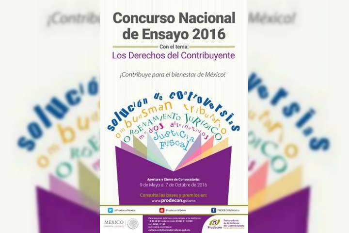 NOTICIAS 02/06/2016Prodecon abre convocatoria para Concurso Nacional de Ensayo 2016Como parte de las acciones encaminadas a la promoción y difusión de la nueva cultura contributiva, que coadyuve en la construcción de un sistema tributario eficiente y equitativo, asà como una sociedad participativa, corresponsable y solidaria, la Facultad de Derecho y Ciencias Sociales de la Universidad Michoacana de San Nicolás de Hidalgo, dio a conocer en su página oficial la convocatoria publicada por la ProcuradurÃa de la Defensa del ... Ver más...