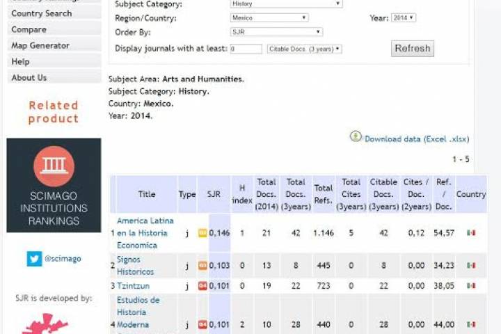 NOTICIAS 02/06/2016Reconocen a la revista de Historia Tzintzun como la tercera mejor en MéxicoLa revista de estudios históricos Tzintzun, publicación especializada del Instituto de Investigaciones Históricas de la Universidad Michoacana de San Nicolás de Hidalgo, dedicada a la difusión del conocimiento histórico, fue reconocida por el SCImago Journal & Country Rank que como la tercera mejor revista de Historia en México.