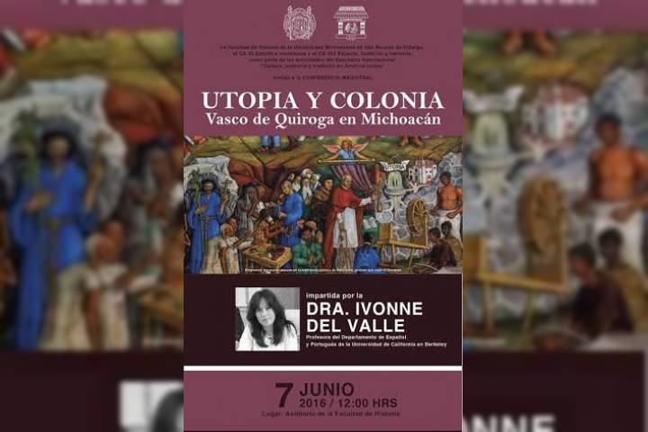 NOTICIAS 06/06/2016Conferencia magistral sobre Vasco de Quiroga en la Facultad de HistoriaUna de las figuras clave en el proceso de conquista y colonización del llamado Nuevo Mundo, el abogado Vasco de Quiroga, será el protagonista de la conferencia magistral que ofrecerá la doctora Ivonne del Valle en la Facultad de Historia de la Universidad Michoacana de San Nicolás de Hidalgo (UMSNH).