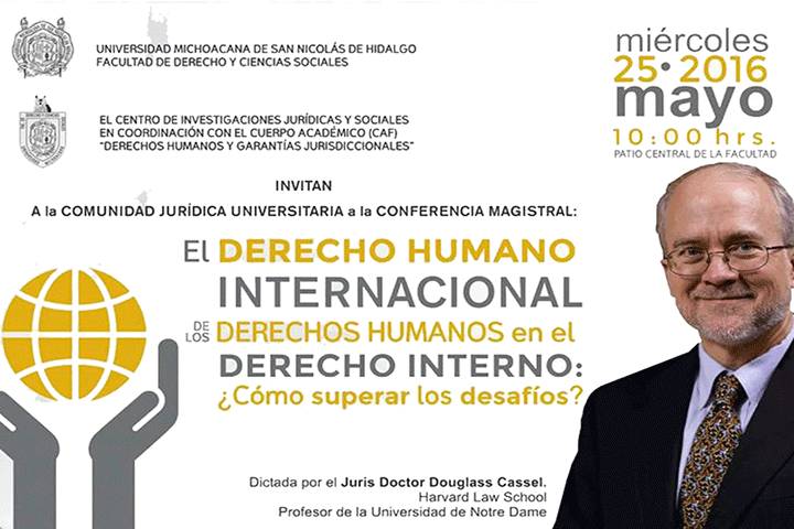 NOTICIAS 22/05/2016Todo listo para la conferencia de Douglass Cassel en Facultad de DerechoTodo se encuentra listo para la presentación del catedrático e investigador de las universidades de Harvard Law School y Notre Dame, Estados Unidos, Douglass Cassel, quien impartirá en la Facultad de Derecho y Ciencias Sociales de la Universidad Michoacana de San Nicolás de Hidalgo la conferencia magistral "El Derecho Humano Internacional de los Derechos Humanos en el Derecho Interno: ¿Cómo superar los desafíos"?".