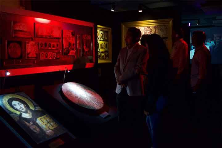 Medardo Serna, Rector de la Universidad Michoacana de San Nicolás de Hidalgo, recorrió, junto con su esposa e hijos, la muestra museográfica La Sábana Santa, instalada en el Polifirum Digital de la capital michoacana.