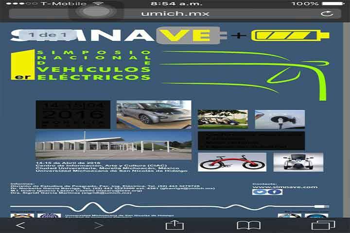 El Primer Simposio Nacional de Vehículos Eléctricos en México, organizado por el Consejo Nacional de Ciencia y Tecnología en conjunto con la Universidad Michoacana de San Nicolás de Hidalgo, tendrá lugar en el Centro de Información Arte y Cultura (CIAC) de Ciudad Universitaria los días 14 y 15 de abril, informó la directora de la Facultad en Ingeniería Eléctrica, Elisa Espinosa Juárez.