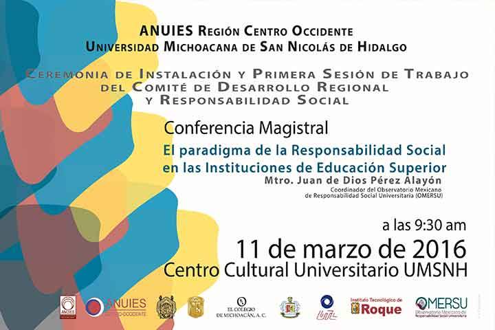 NOTICIAS 09/03/2016Se instalará en Morelia Comité de Desarrollo Regional y Responsabilidad Social de la ANUIES