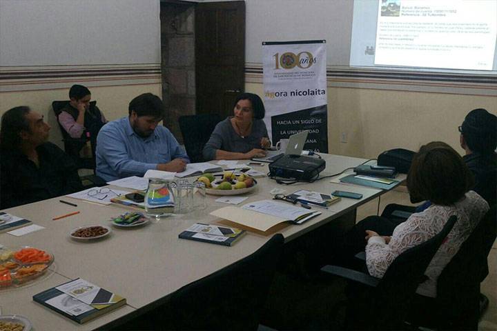 Para que regidores y funcionarios del Honorable Ayuntamiento de Morelia conozcan detalles del proyecto "Ágora Nicolaita", con el que se busca crear un monumento emblemático de la Universidad Michoacana de San Nicolás de Hidalgo para ser colocado en cada uno de los 113 municipios del Estado y de ser posible en otras ciudades del país e incluso del extranjero, la coordinadora de los Estudios de Posgrado de la Casa de Hidalgo, Ireri Suazo Ortu... Ver más...