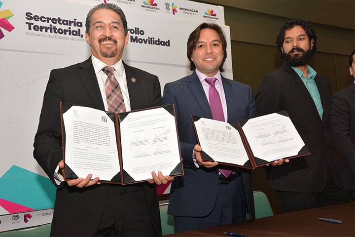 La Universidad Michoacana de San Nicolás de Hidalgo y la Secretaría de Desarrollo Territorial, Urbano y Movilidad (Sedetum) signaron un convenio de colaboración para el intercambio de información y conocimientos técnicos para el establecimiento de acciones que conduzcan a la implementación de estrategias dirigidas al ordenamiento de los centros de población y mejorar la planeación de los mismos.