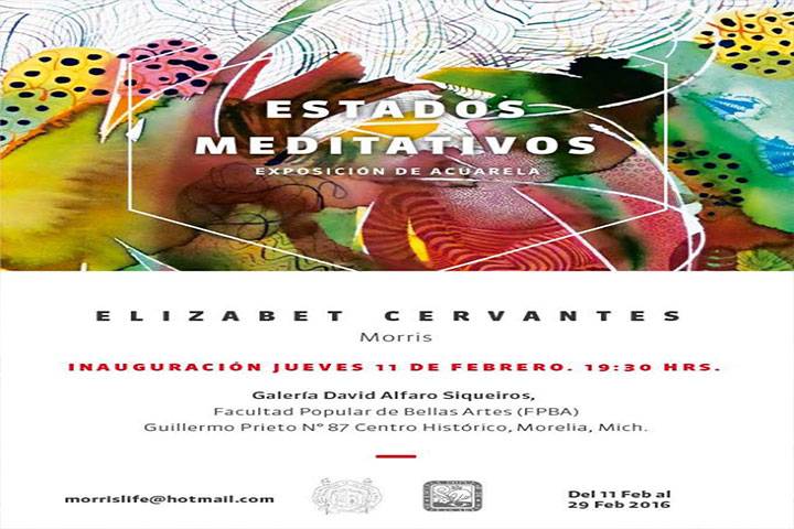 La Facultad Popular de Bellas Artes (FPBA) de la Universidad Michoacana de San Nicolás de Hidalgo (UMSNH), albergará durante el mes de febrero la obra pictórica "Estados Meditativos" de la reconocida artista Elizabet Cervantes.