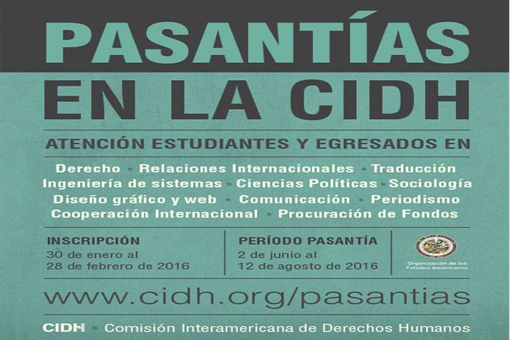 NOTICIAS 03/02/2016Oportunidad de pasantías en CIDH a estudiantes de la Facultad de Derecho