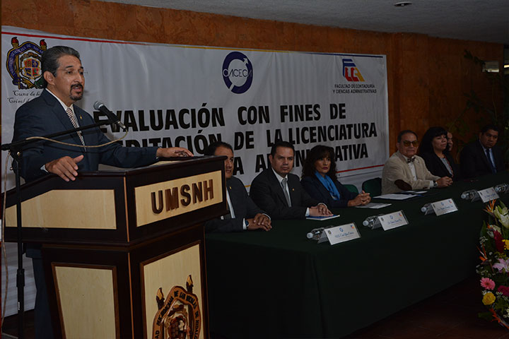 Tras dar la bienvenida al grupo de visitadores del Consejo de Acreditación en Ciencias Administrativas, Contables y Afines (CACECA), a la Facultad de Contaduría y Ciencias Administrativas de la Universidad Michoacana de San Nicolás de Hidalgo (FCCA), el rector Medardo Serna González se congratuló de que el ejercicio de evaluación de programas se haya convertido en parte del quehacer cotidiano de la Casa de Hidalgo.