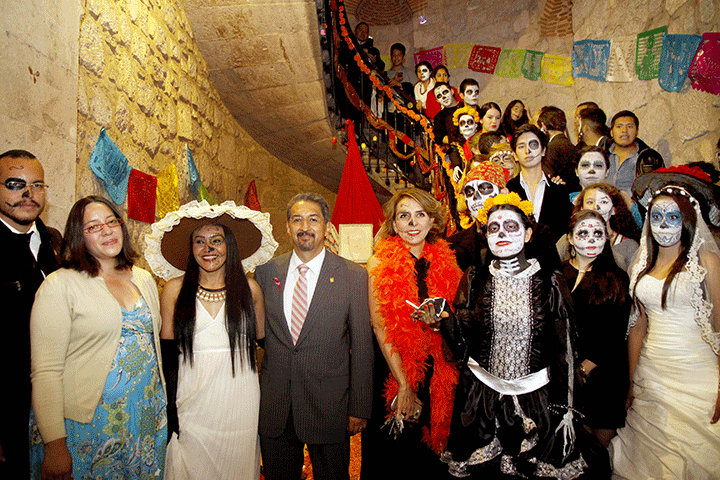 NOTICIAS 31/10/2015Vigentes, tradiciones de la cultura mexicana en el Colegio de San NicolásLas auténticas tradiciones mexicanas que son orgullo de nuestro paÃs ante el mundo, siguen vigentes en el Colegio de San Nicolás de Hidalgo, donde estudiantes y maestros instalaron monumentales altares dedicados a Miguel Hidalgo, José MarÃa Morelos, Frida Kahlo y Diego Rivera, en ocasión de la Noche de Muertos.