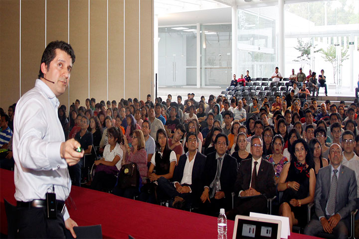 El reconocido investigador mexicano, presidente de la Red de Talentos Mexicanos en Suiza, Luis Roberto Flores Castillo, sustentó ante jóvenes universitarios nicolaitas, la conferencia magistral "El descubrimiento del bosón de Higgs" también conocida como "la partícula de Dios".
