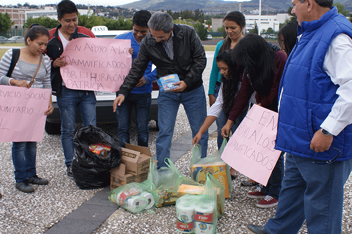 NOTICIAS 24/10/2015Responden michoacanos al llamado de la UMSNH para auxiliar a damnificadosLa sociedad michoacana dejó constancia de su solidaridad con quienes enfrentan situaciones difíciles y acudió al llamado de la Universidad Michoacana de San Nicolás de Hidalgo para donar despensas, medicamentos y artículos de higiene personal que serán entregados a las familias que han resultado afectadas por el huracán "Patricia" que azotó las costas mexicanas.