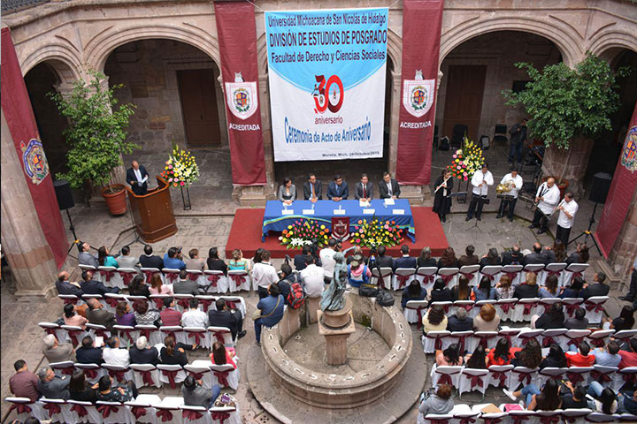 A dos años de celebrar el primer Centenario de la Universidad Michoacana, el reto del Posgrado nicolaita es continuar siendo un referente nacional, aportando al país egresados de calidad que contribuyan a la solución de los problemas nacionales y al bienestar de nuestra sociedad, señaló Ireri Suazo Ortuño, coordinadora general de los Estudios de Posgrado, durante la ceremonia realizada por el 30 Aniversario de la División de Estudios de ... Ver más...